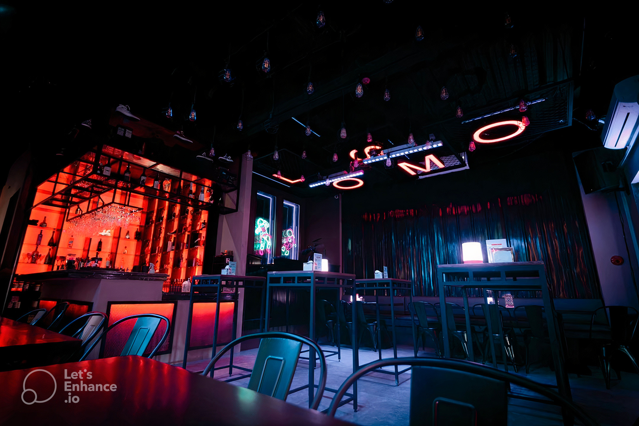A vibrant space buzzing with energy and adorned with neon lights, the bar features an array of colorful and inventive mocktails and craft sodas, with names that pay homage to internet memes and pop culture references. There are also specialty drinks made with unique ingredients and garnishes that are both aesthetically pleasing and delicious.