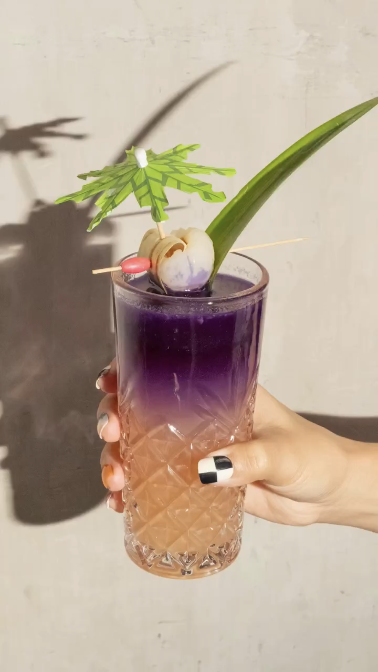 A tropical and strong drink that includes rum-infused blue pea, rum, special syrups, lychee, lemon, and pineapple.