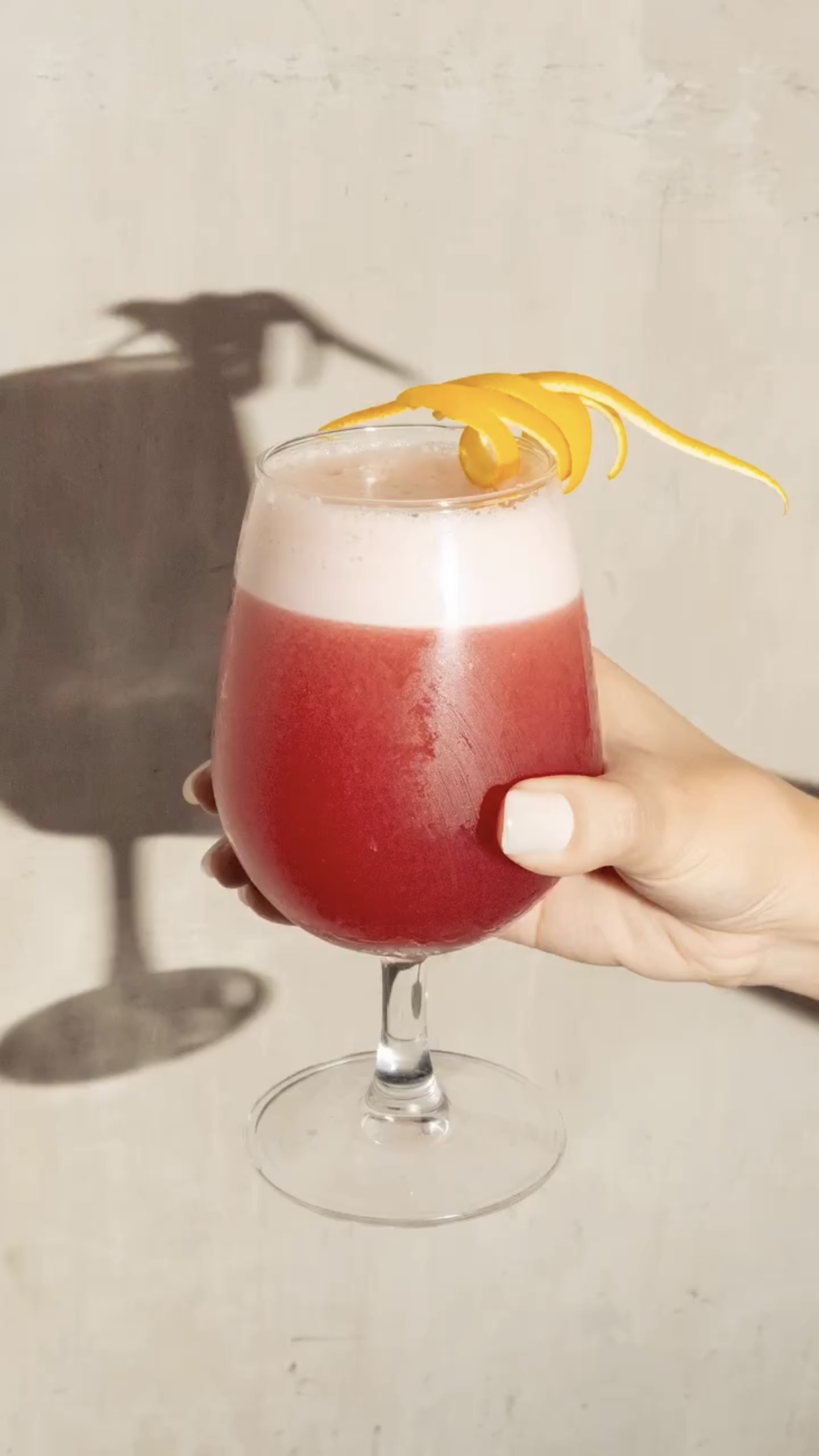 Tart, sweet, and creamy. This delicious drink Includes bourbon whiskey, flavored liquor, vermouth, fruit juice, and special syrup. Topped with an orange peel.