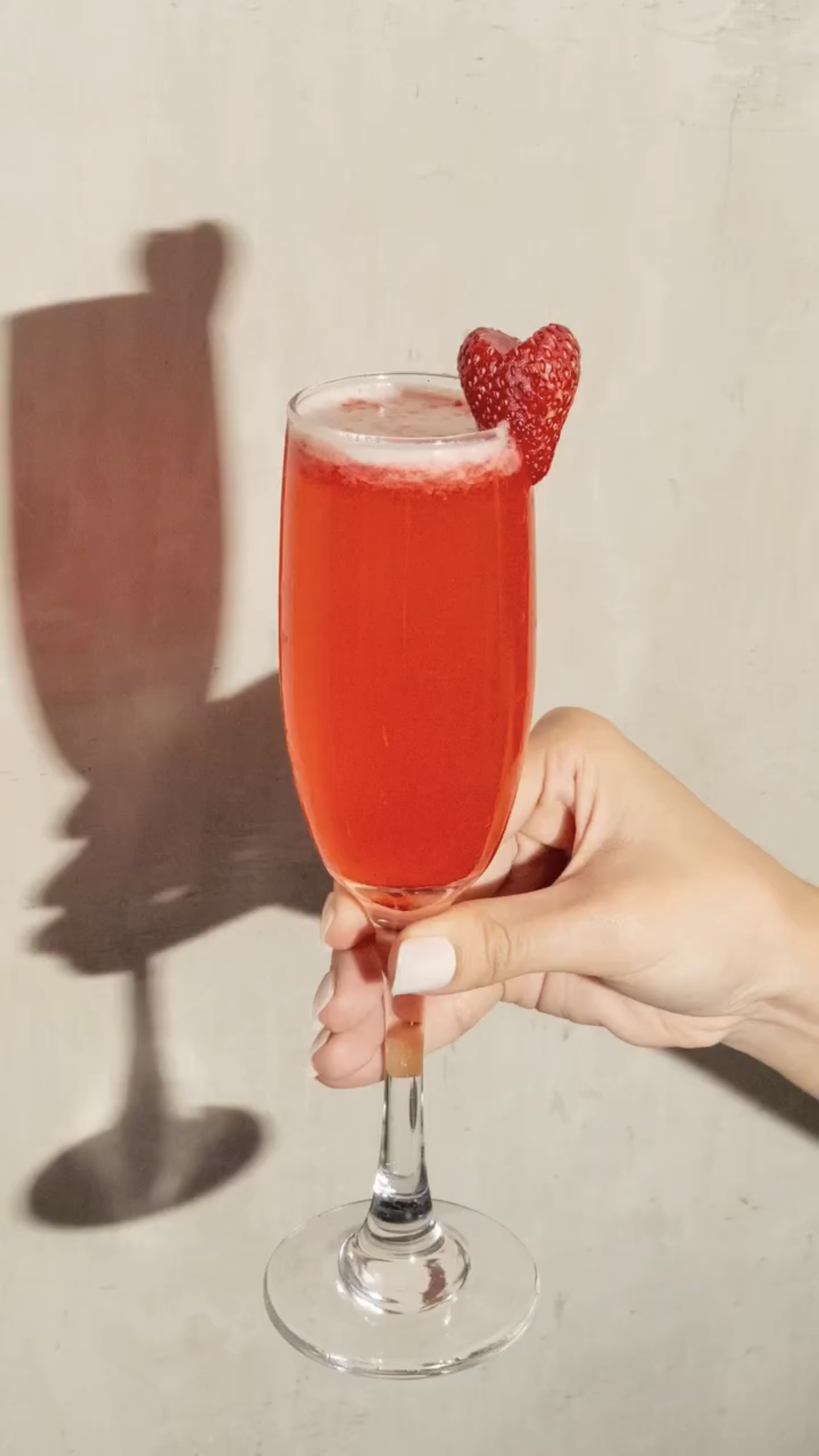 A refreshing, fruity, and bubbly drink that includes strawberry puree, vodka, and daiquiri. Topped with sparkling wine.