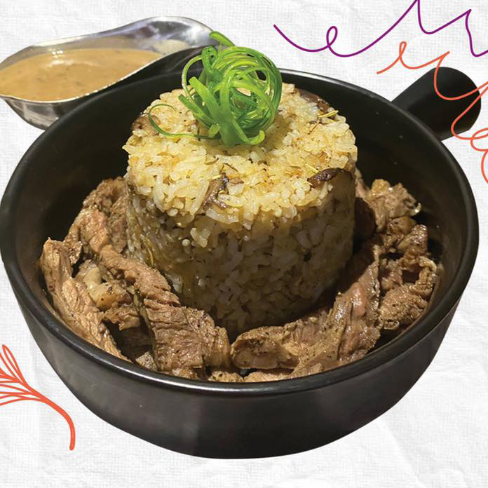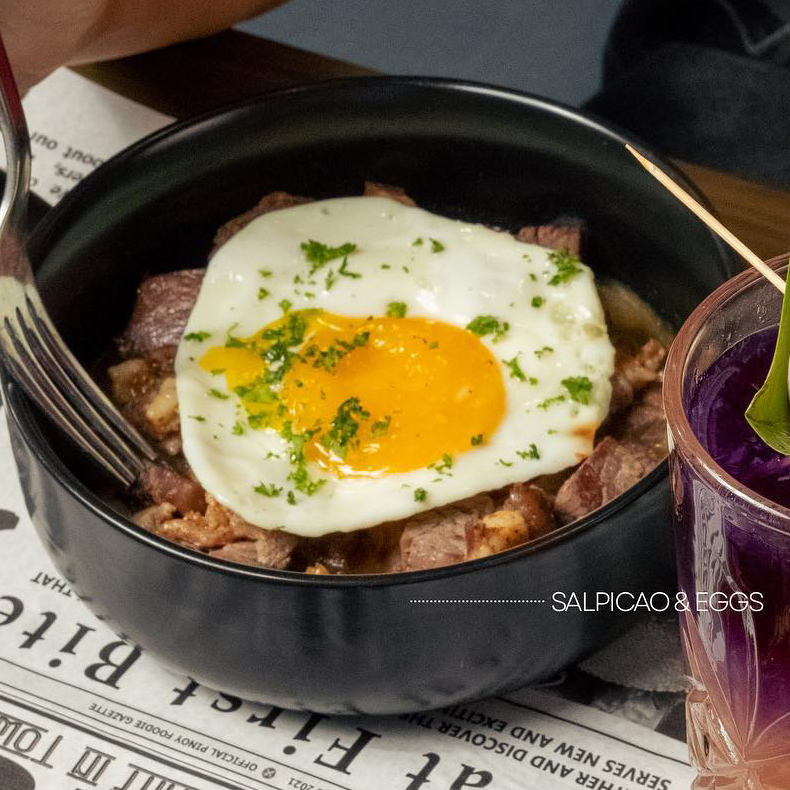 A tantalizing blend of garlicky, savory beef salpicao paired with perfectly cooked eggs, creating a harmonious balance of flavors and textures.